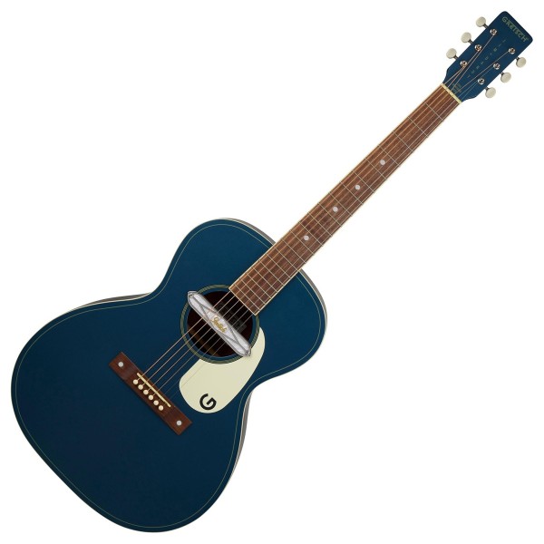 The X-braced body is crafted with select lightweight laminate tonewoods for an optimal balance of woody vintage tone and reliable durability, while the “C”-shape neck presents an inviting feel for hours of old-timey inspiration. The onboard Gretsch Deltoluxe magnetic soundhole pickup produces versatile electrified acoustic tone, providing added utility for live performance, recording, and effects pedals. Period-correct details such as a vintage-style pinned bridge, “G”-graphic pickguard, painted pinstripe purfling, 3-on-a-plate open-gear tuning machines and oversized dot fingerboard inlays combine for a nostalgic personality destined for any barnburner or jamboree.